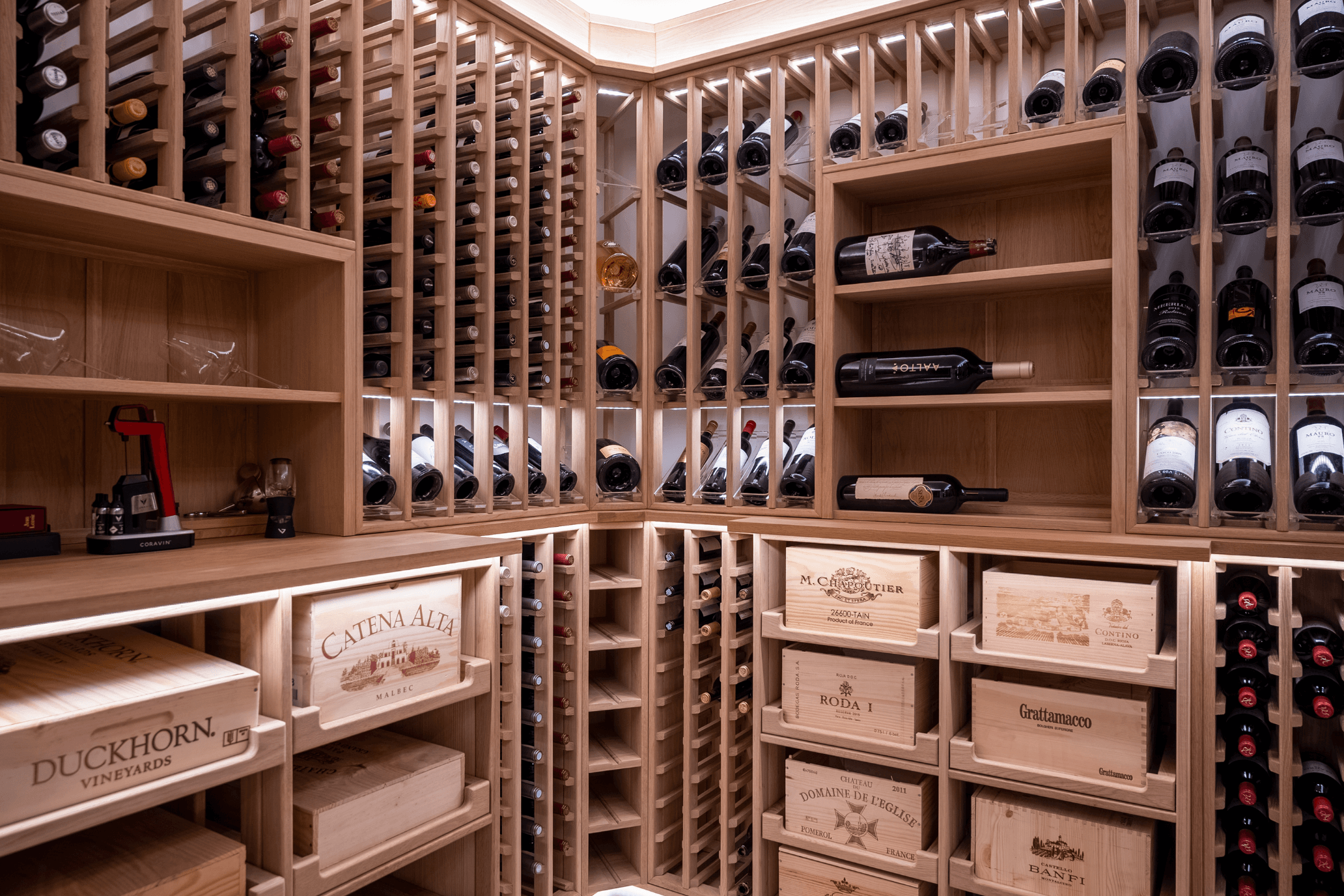 A temperature control system was installed to maintain consistent conditions, ensuring the wine is stored at the correct temperature year-round, supporting long-term preservation of the collection.