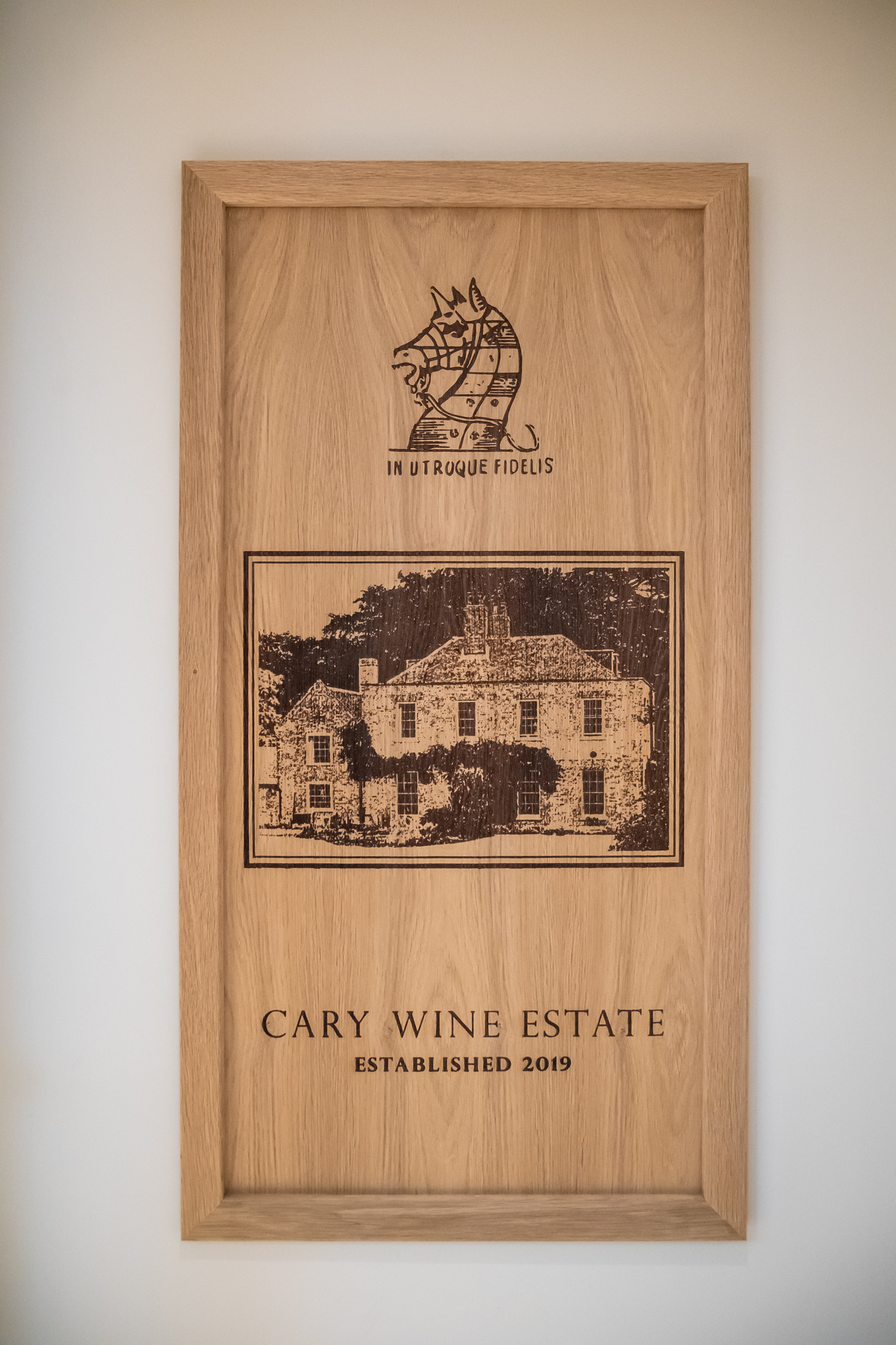 Personalised, engraved cases boxes utilising the client's vineyard crest